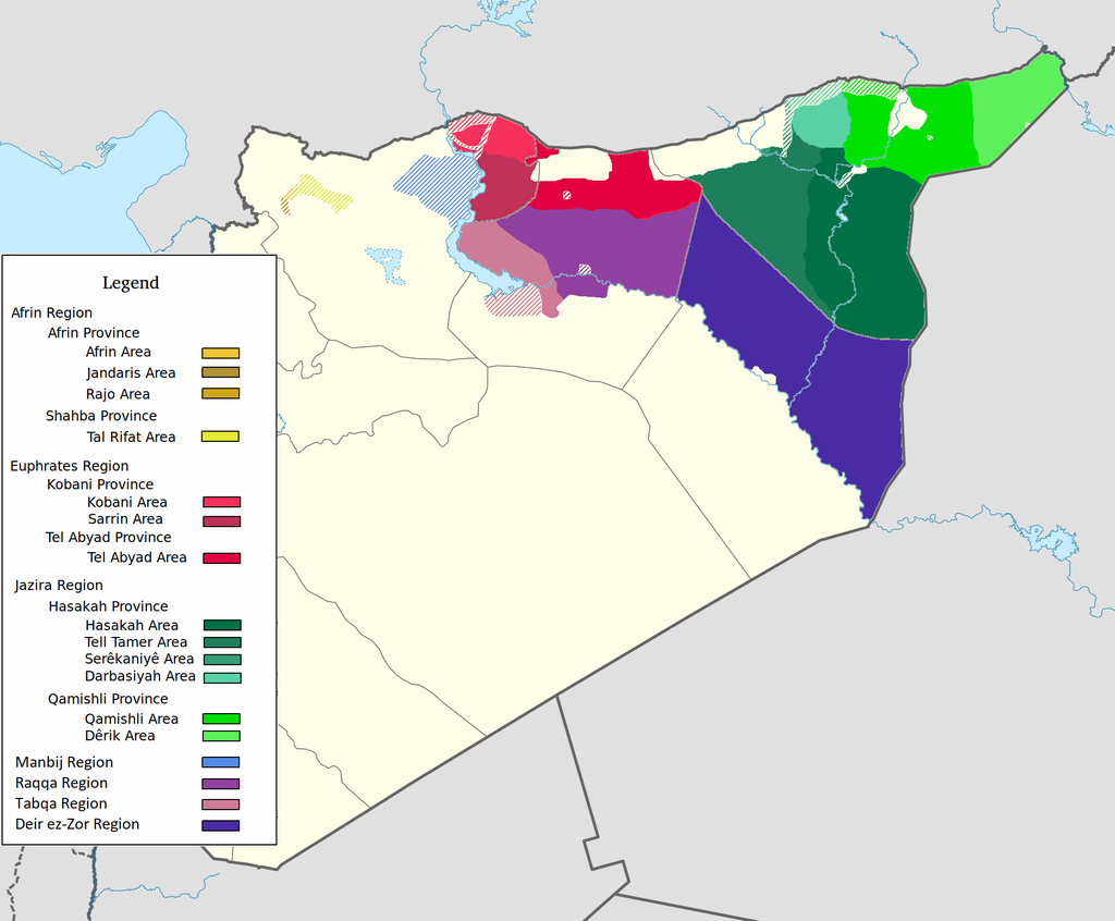 Förutom Israel har Turkiet varit den grannstat som sett till att kriget mot den syriska staten blivit utdraget och destruktivt. Medan Israel agerat i det fördolda har Turkiet agerat helt öppet. Därvid har man kunnat utnyttja sitt geografiska läge med en porös gräns genom vilken vapen och krigare kunnat slussas in. Därtill har Turkiet i det nordvästra Syrien haft interna försänkningar, turkiskättat folk som agerat som villiga mellanhänder.