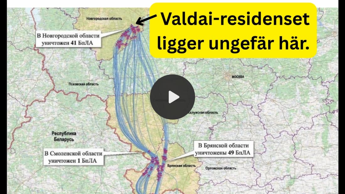 Medan Zelenskyj var i Florida för att övertyga Trump om sin senaste tjugopunktsplan ska Ukraina ha försökt attackera Putins residens i Valdai – med hela 91 drönare. Det var i alla fall vad utrikesminister Lavrov påstod i måndags och vad Putin själv berättade i ett telefonsamtal med Trump.