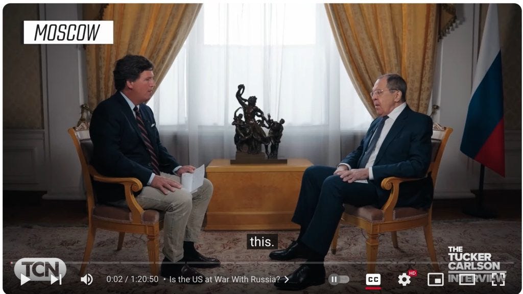 Till och med Sergei Lavrov säger att Ryssland och USA är inte i krig med varandra i Tucker intervjun.