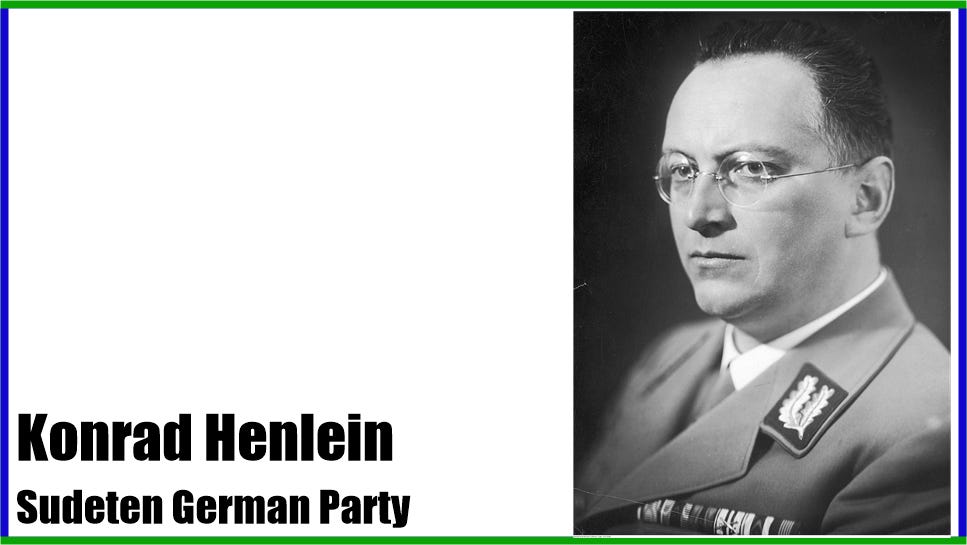Henlein samordnade sitt partis agenda med Hitler och deras strategi var att fortsätta pressa den tjeckiska regeringen för allt större eftergifter, vilket eskalerade krisen till en kokpunkt 1938.